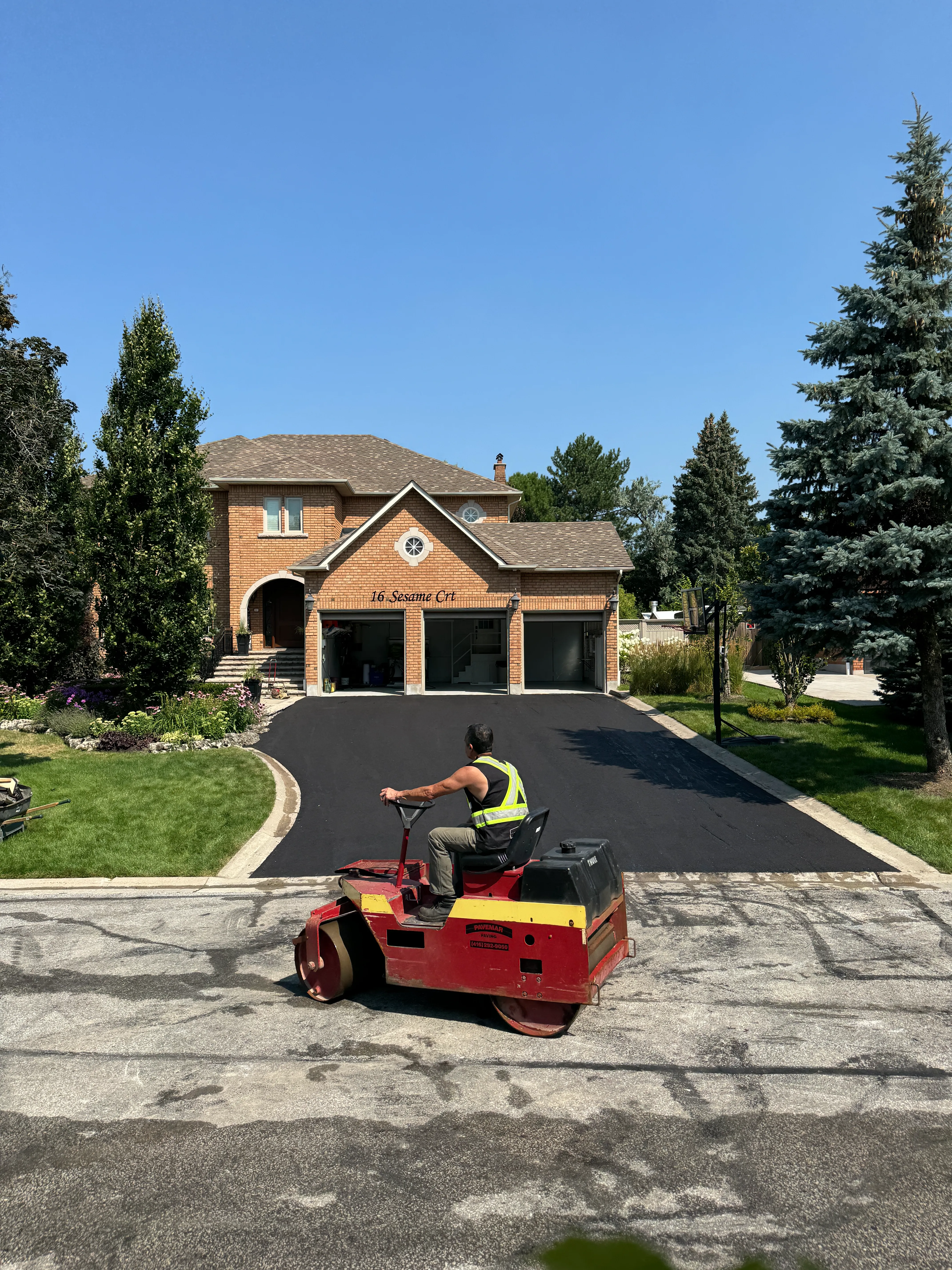 This driveway was in dire need of replacement and needed to be excavated near the garage due to an inferior sub-base. We removed the old asphalt, excavated the compromised area and re-levelled the whole driveway with a new layer of concrete crush stone. The client wanted a "pool table finish" so we used HL3A asphalt and smoothed out every square foot of the driveway by hand. The final product was a seamless finish and sturdy surface that the customer was proud to display.